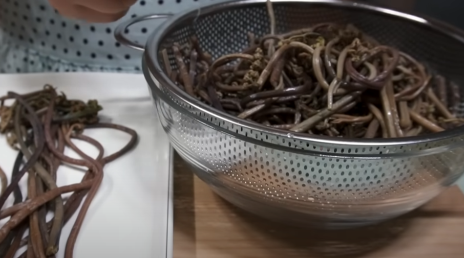 - 먼저 고사리를 깨끗이 씻어 이물질을 제거합니다.