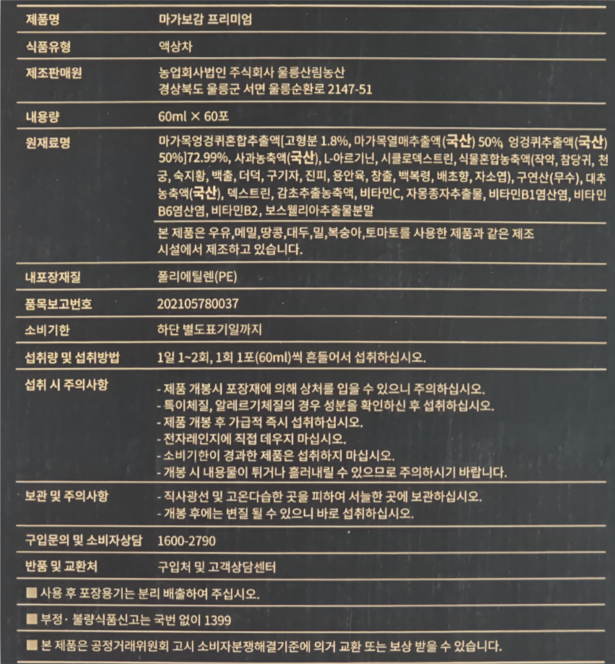 - 마가보감 프리미엄 진액 10% 울릉도 신비의 나무 60ml → 약 298,000원