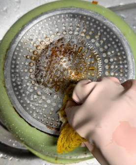 겉으로는 깨끗해 보여도 물이나 식용유로 닦아내면 수세미가 시커멓게 변하는 걸 보실 수 있습니다.