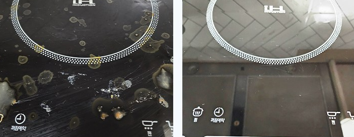 기존에는 식용유+밀가루+키친타월 조합이나 베이킹소다로 연마제 제거를 많이 했지만, 번거롭고 효과가 미흡한 경우가 많습니다.