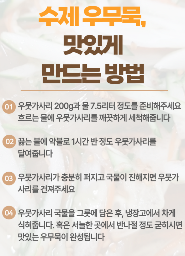 냉국, 무침, 콩국 등 다양하게 응용할 수 있어 활용도도 높습니다.