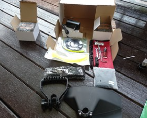 상자를 열자마자 본체, 칼날, 나일론 커터기, 어깨끈, 충전기, 장갑, 수납가방까지 풀세트가 들어있어 따로 준비할 게 없더라고요.