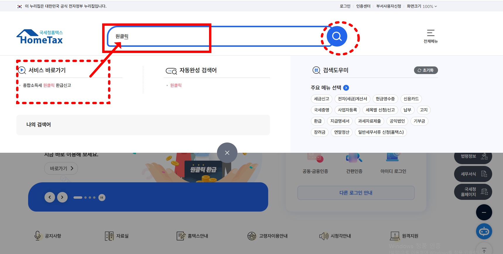 - ✅ 홈택스/손택스 접속 후 원클릭 환급 버튼 클릭