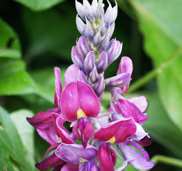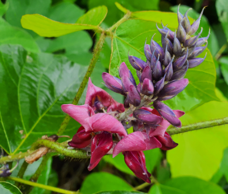 칡꽃은 7~8월 사이에 피며 진한 보라색을 띠고, 독특한 향을 풍깁니다. 꽃 자체에 사포닌과 플라보노이드 성분이 풍부하여 건강에 좋은 작용을 합니다.