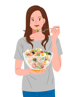 ✔ 닭가슴살 샐러드 + 고구마 1개 + 아몬드 5알
