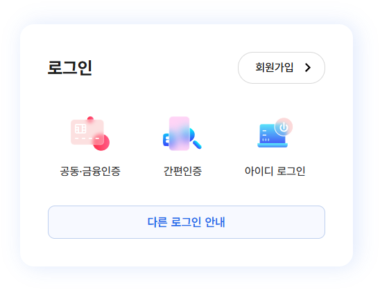 - 간편인증 또는 공동인증서 로그인